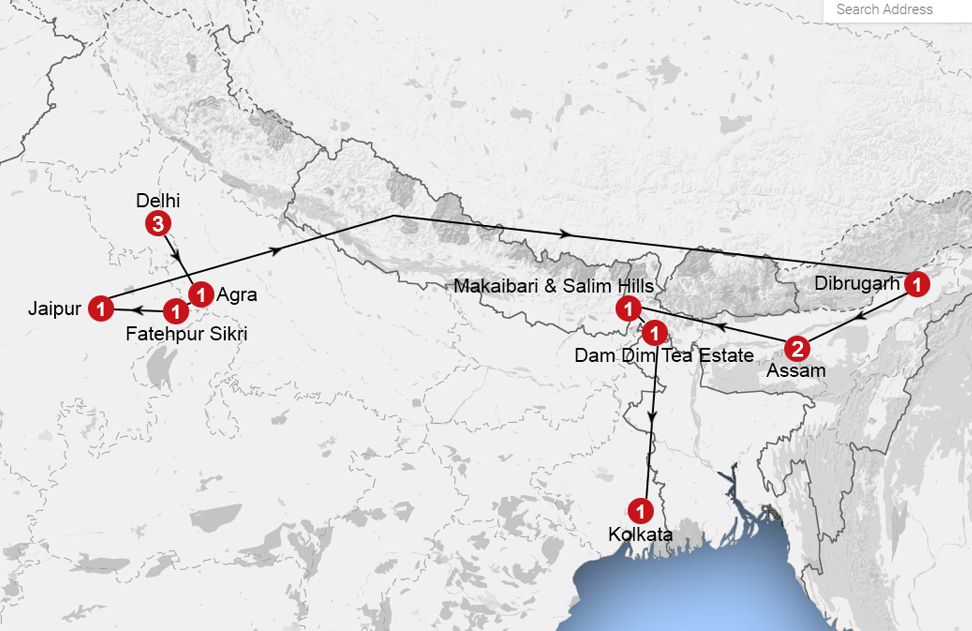 Jaipur – Dibrugarh. Today they take a flight to Dibrugarh by Delhi and Guwahati. Dibrugarh is called The Tea Capital of Assam, is the gateway to of the largest tea producing districts. Overnight – Dibrugarh