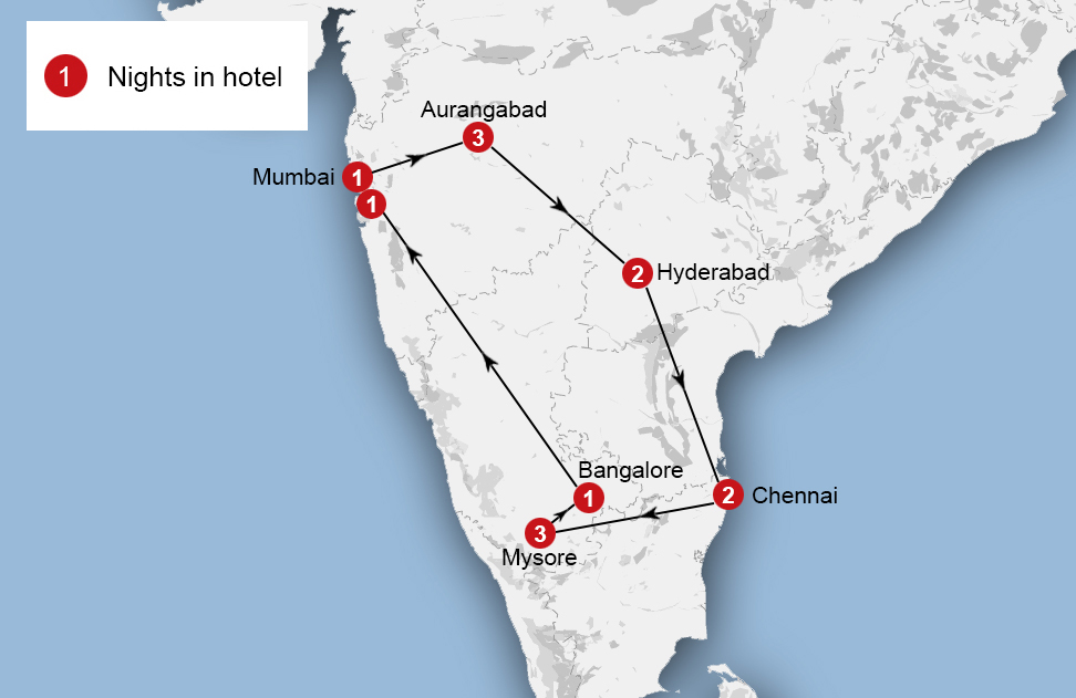 On the 14th day of the west India tour, you will depart from Mumbai for your journey back home. Depart for your onward journey. End of the South and West India travel package.