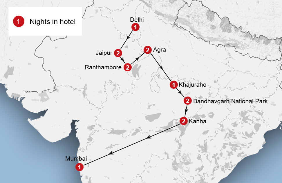 The 14 days wildlife tour cover different wildlife reserve with abundant of opportunities to see your loveable animals and birds in their natural habitat. Some of the important touristic cities you can visit during your wildlife tour in India include Delhi, Jaipur, Agra, Khajuraho and Mumbai. Travel East offers you the best wildlife tour packages for India. Our wildlife tour packages come with a range of accommodation options so that you could make your wildlife tour mesmerizing. Come with a range of accommodation options, ranging from luxury tented camps to modest jungle lodges; we make your accommodation truly luxurious.